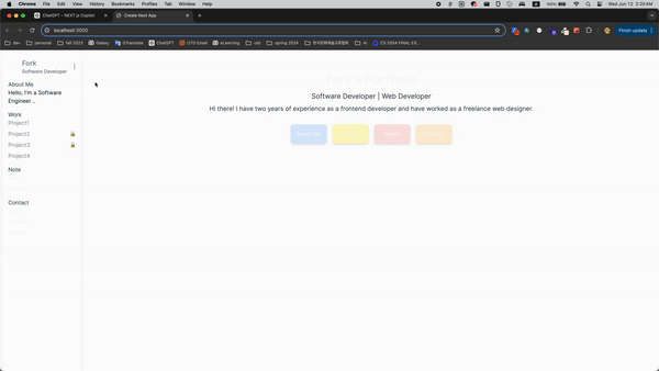 제가 이번에 Portfolio로 만들어 볼 디자인을 만들었고 거의 챗GPT와 비슷하게 만들었습니다.